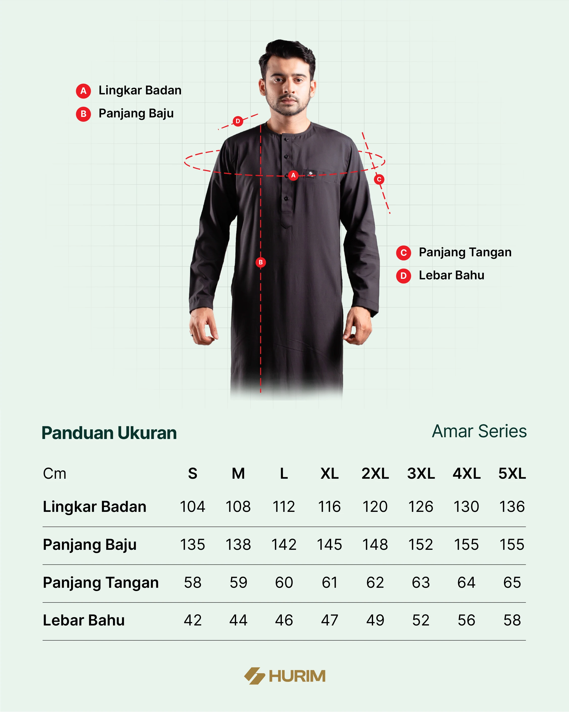 Size chart yang tertera dapat berbeda sekitar 1-2 cm karena proses penjahitan dan pemotongan bahan.