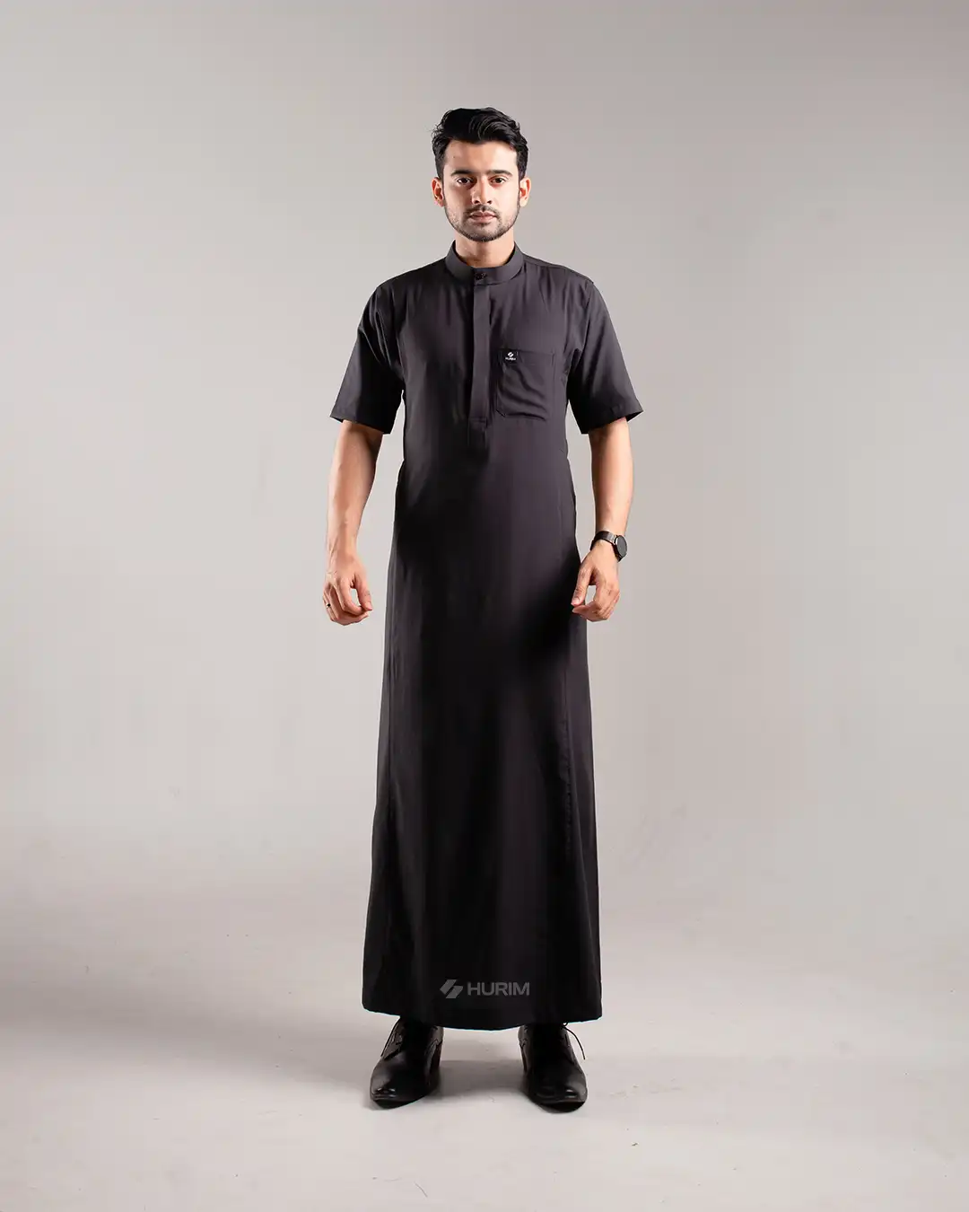 HURIM® – Jubah Thobe Pria Lengan Pendek Athir Series Warna Hitam