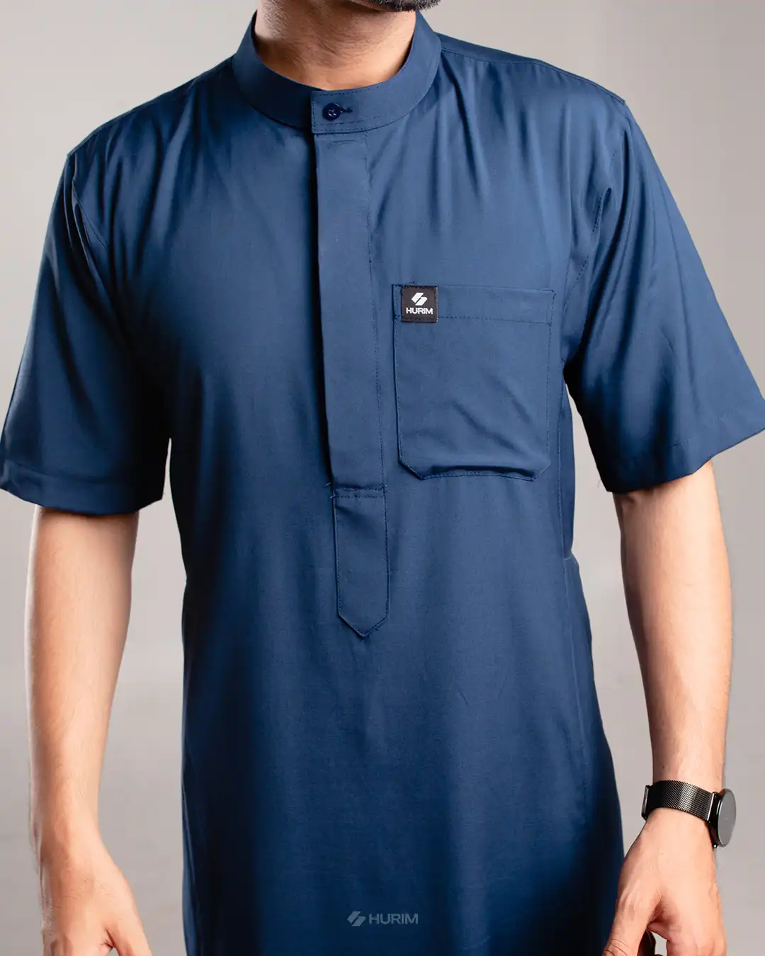 HURIM® – Jubah Thobe Pria Lengan Pendek Athir Series Warna Navy