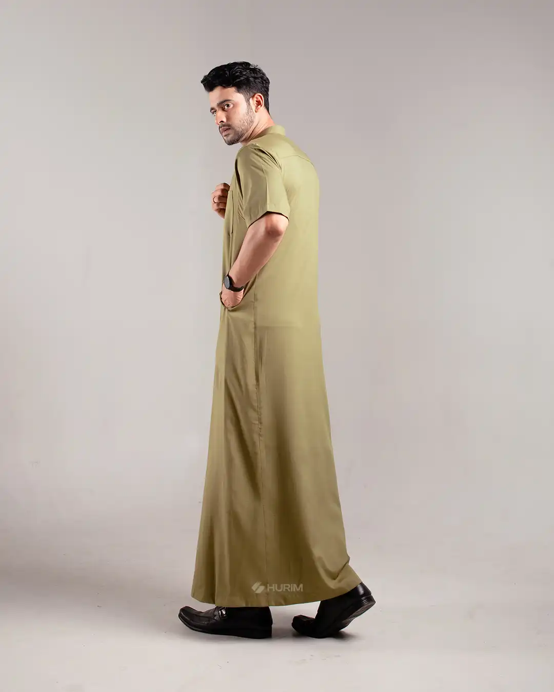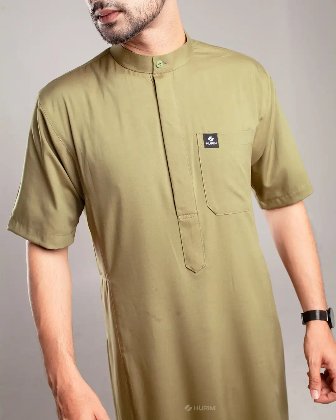 HURIM® – Jubah Thobe Pria Lengan Pendek Athir Series Warna Olive